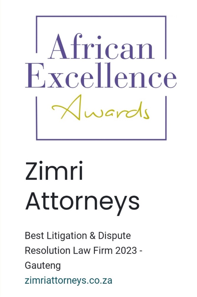 Zimri Attorneys has been recognised by MEA Markets, who awarded it an African Excellence Award for ‘Best Litigation and Dispute Resolution Law Firm 2023 - Gauteng’.